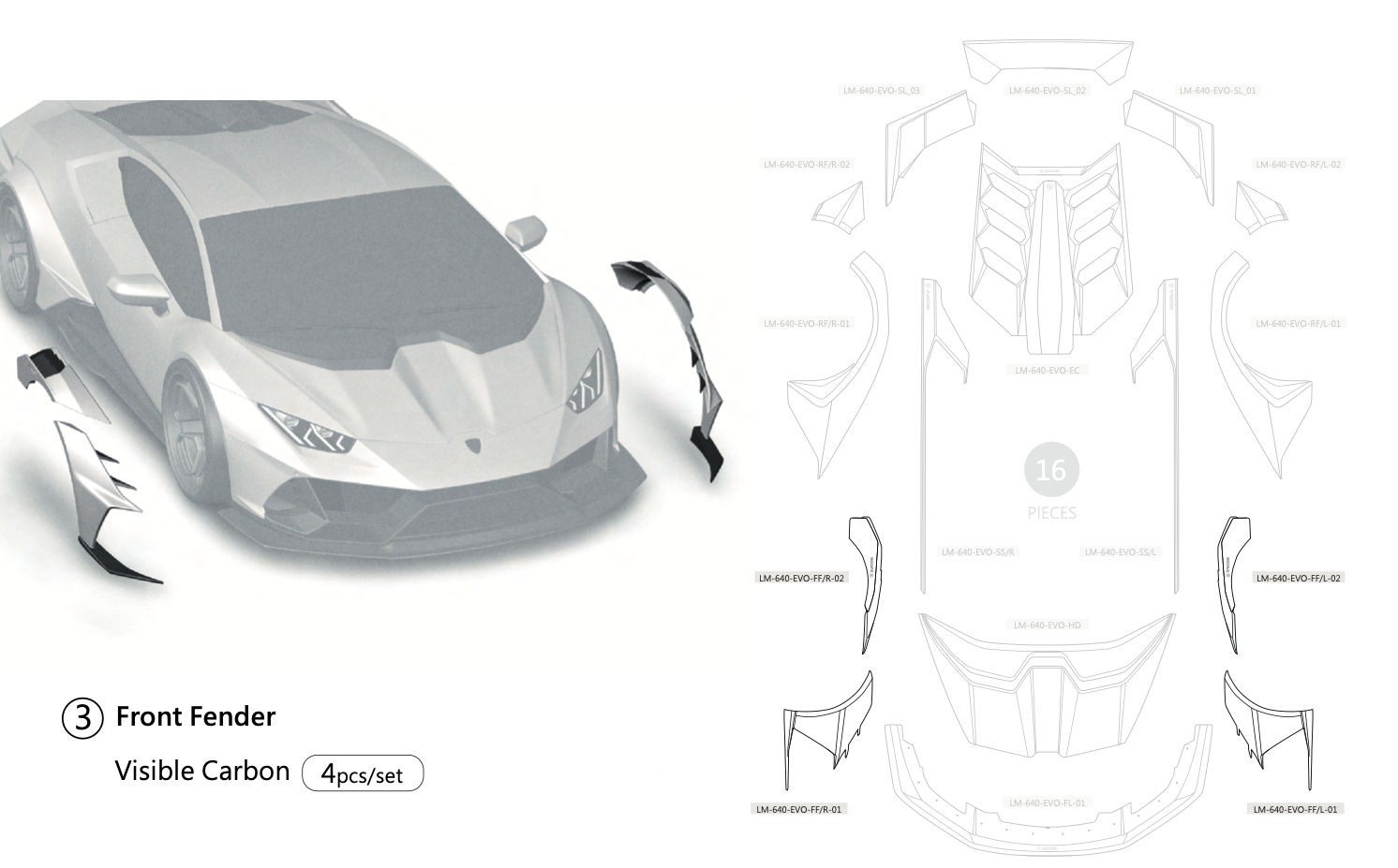 Lamborghini Evo Fusion Runner Wide DCF Full Kit - Zacoe