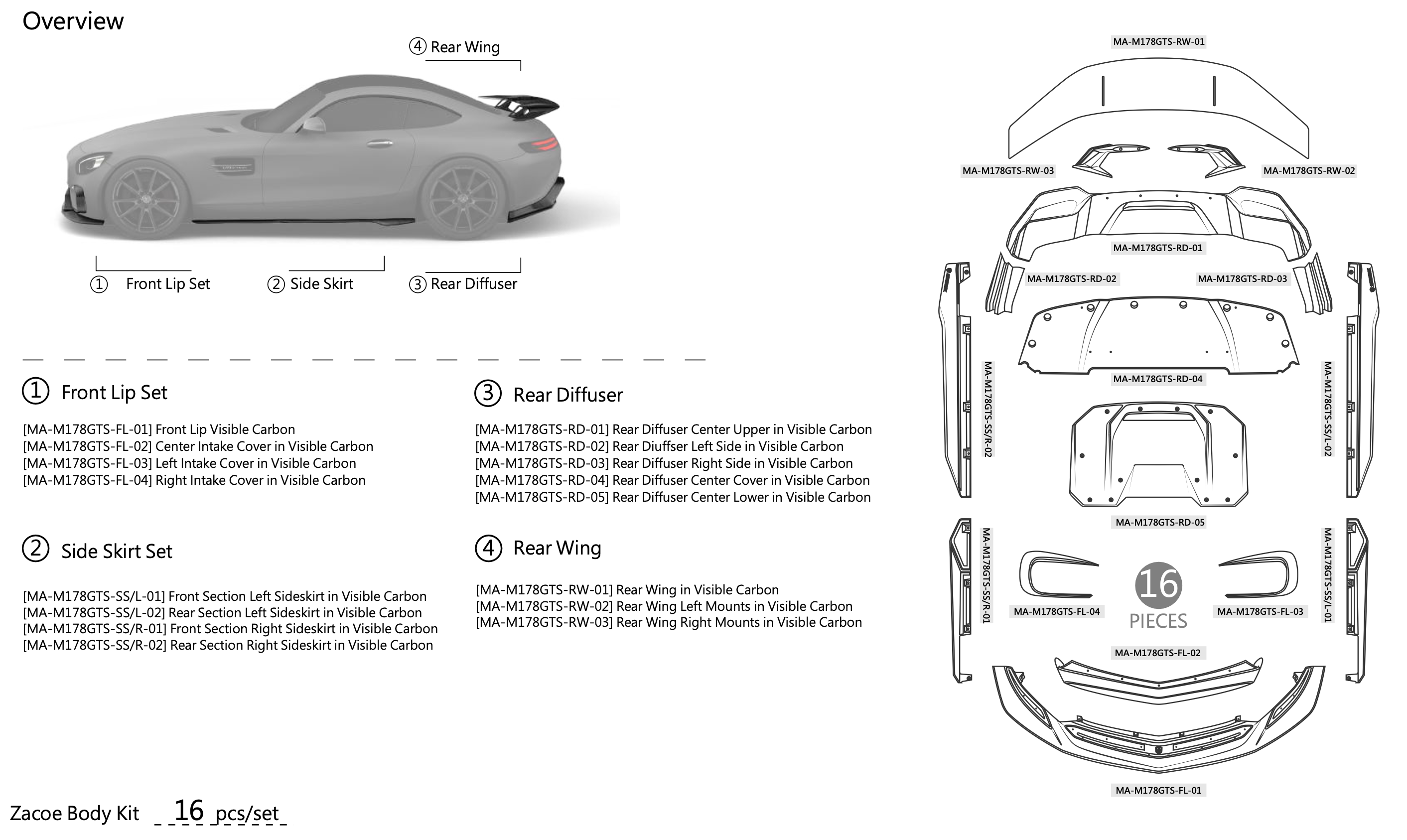 Mercedes-Benz AMG GT Carbon Fiber Body kit products represent the peak of technology and are unsurpassed for quality and attention to detail. Creative, functional and innovative, they are elegantly crafted by professional designer using Zacoe’s savoir-faire.