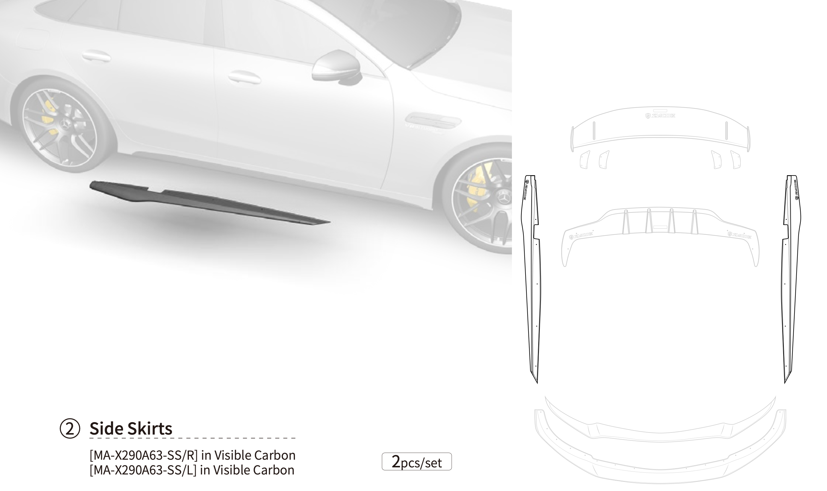 Mercedes-Benz GT63 AMG Carbon Fiber Body kit products represent the peak of technology and are unsurpassed for quality and attention to detail. Creative, functional and innovative, they are elegantly crafted by professional designer using Zacoe’s savoir-faire.